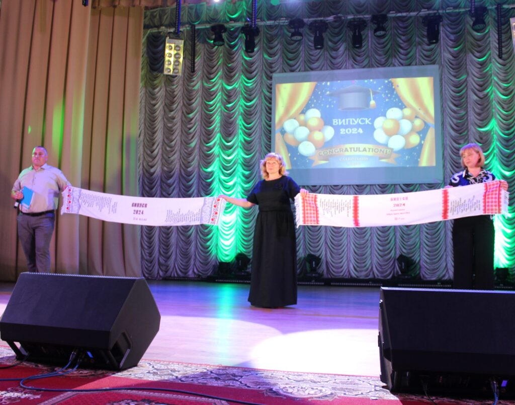Батьки побажали дітям щастя та успіхів у дорослому житті, крокувати у нього впевнено та сміливо, подякували вчителям за їх старанну працю й навчання дітей та на згадку подарували вишиті рушники.