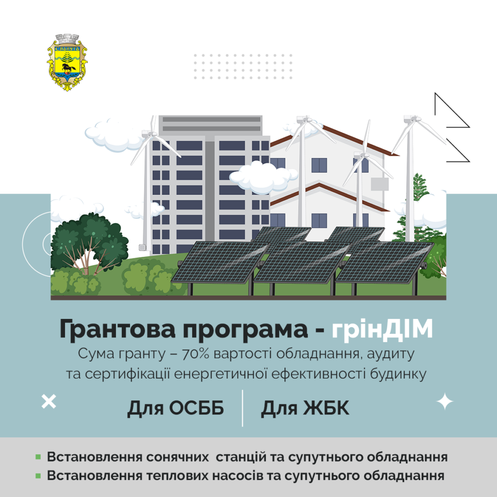 Сума гранту — 70% вартості обладнання, аудиту та сертифікації енергетичної ефективності будинку