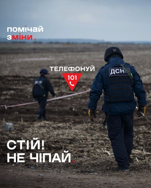 Щоб підвищити обізнаність українців щодо мінної безпеки, запущено інформаційну кампанію «Помічай зміни». Не буває безпечних мін. Але існують правила мінної безпеки, які можуть врятувати життя!