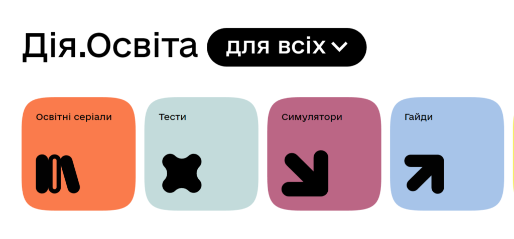 Долучайтеся до Дія.Освіта (https://osvita.diia.gov.ua),щоб розвинути свої цифрові навички, щоб потужніше проявляти себе в професії, швидше навчатися, легше спілкуватися з рідними на відстані, а також бути в безпеці онлайн. Веб-портал цифрової освіти призначений для реалізації права кожного на якісну та доступну освіту шляхом забезпечення створення можливості дистанційного навчання через Інтернет.