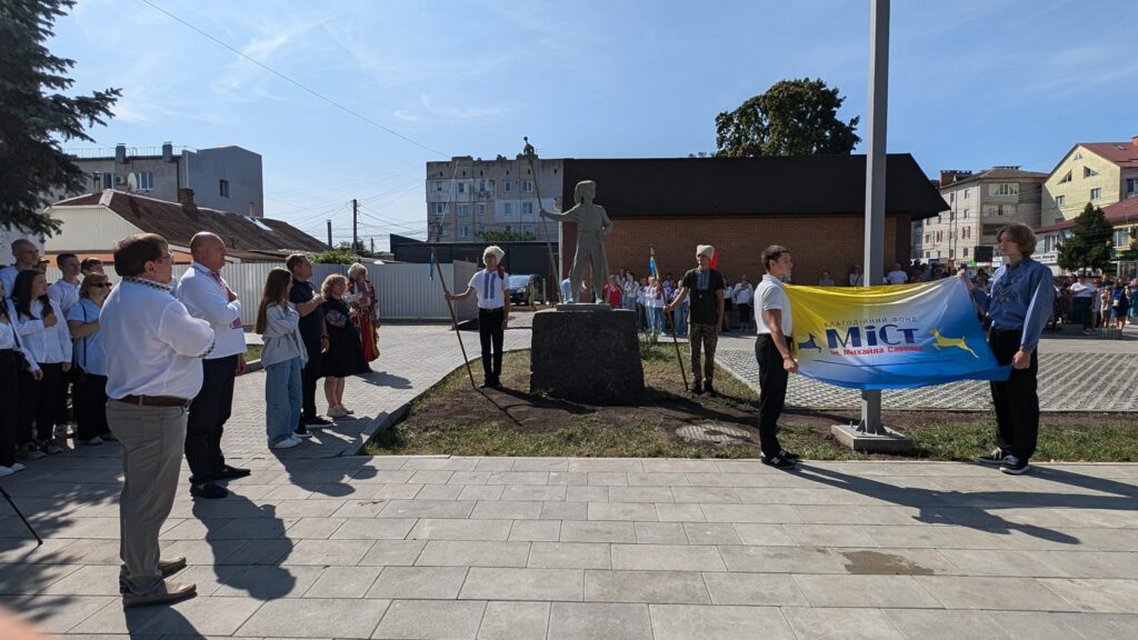 Звернувся до присутніх міський голова Василь Сидор насамперед привітавши усіх із Днем незалежності України та більш детальніше розповівши про скульптуру: