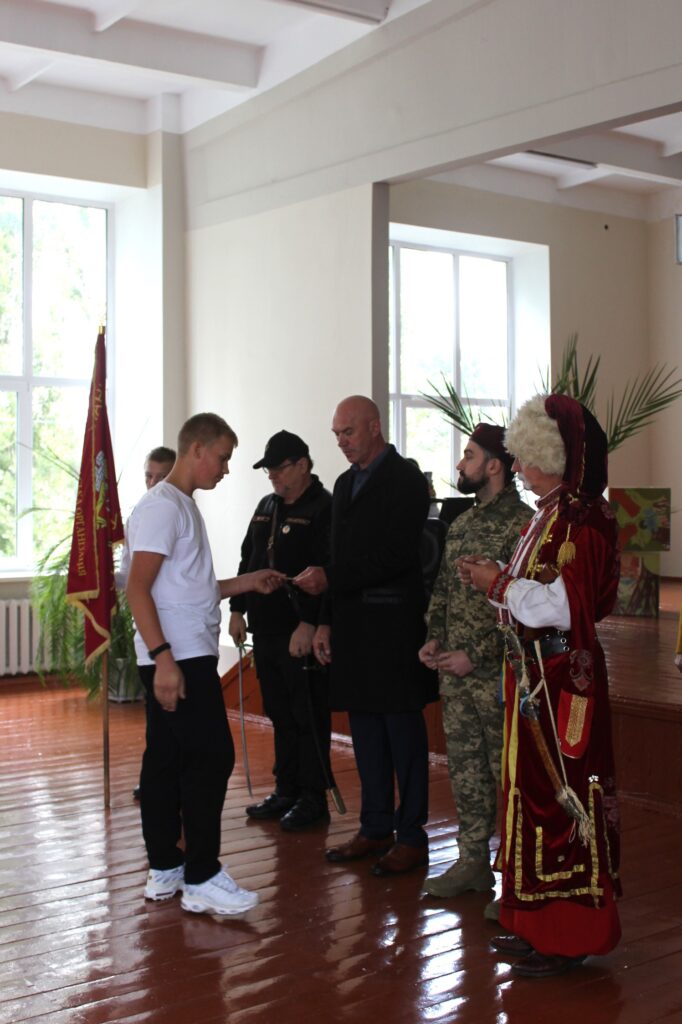 Після чого міський голова Василь Сидор – отаман Хмельницького округу МГО «Козацтво Запорозьке» вручив юним славутчанам посвідчення та символічні подарунки.