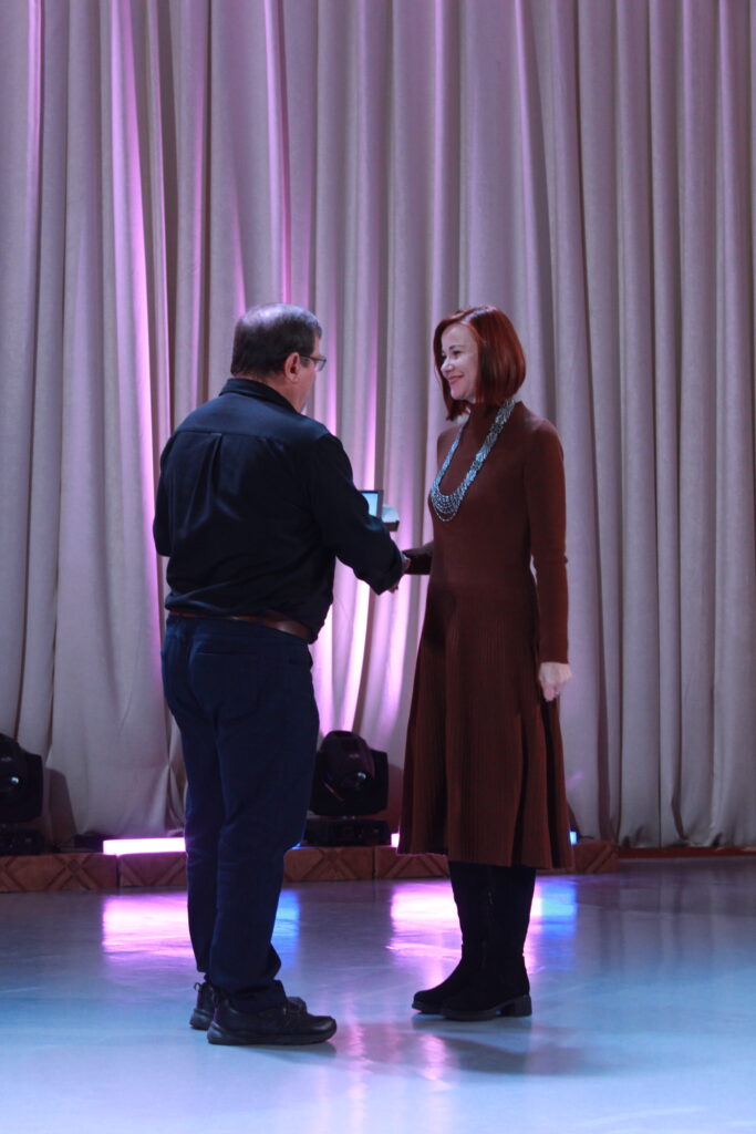 Олена Яківна згадала про подію, яка мала місце майже рік тому. Тоді, внаслідок атаки росії, заклад зазнав сильних ушкоджень, проте спільними та нелегкими зусиллями вдалося швидко відновити навчання дітей. З цього приводу щиро подякувала своїм працівникам, а також міському голові Василю Сидору за допомогу та вручила йому цінні подарунки, зокрема, срібну відзнаку «Гордість ліцею».