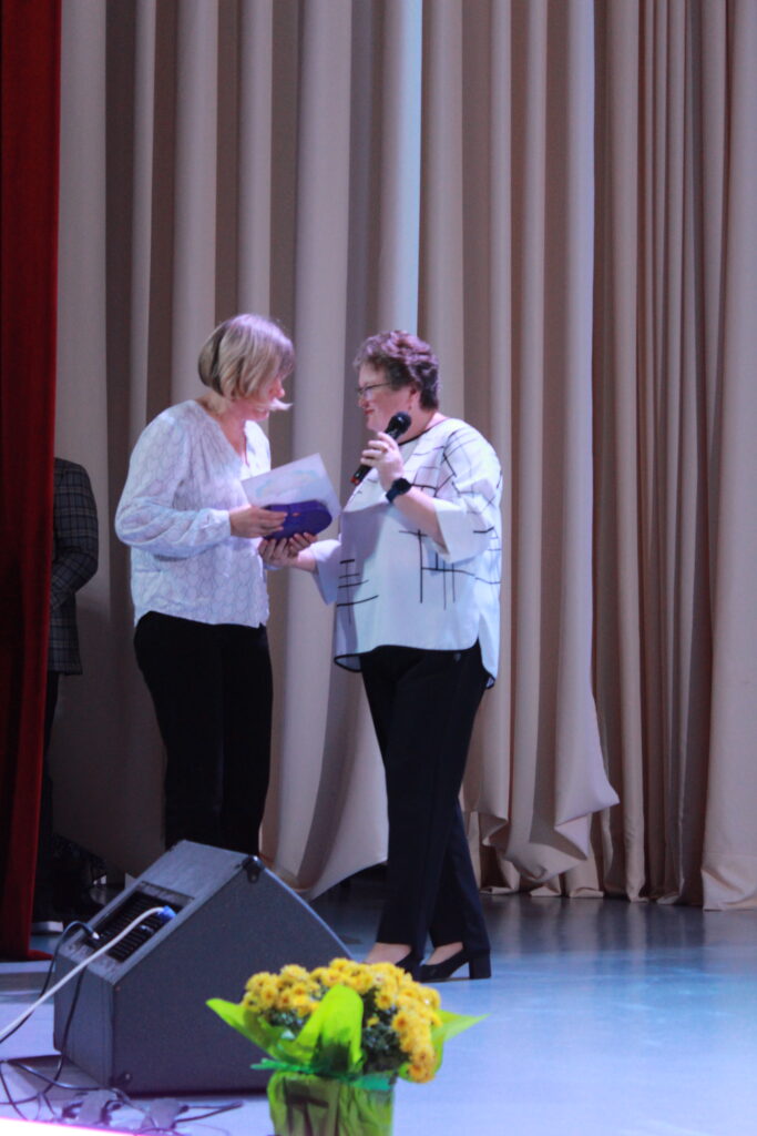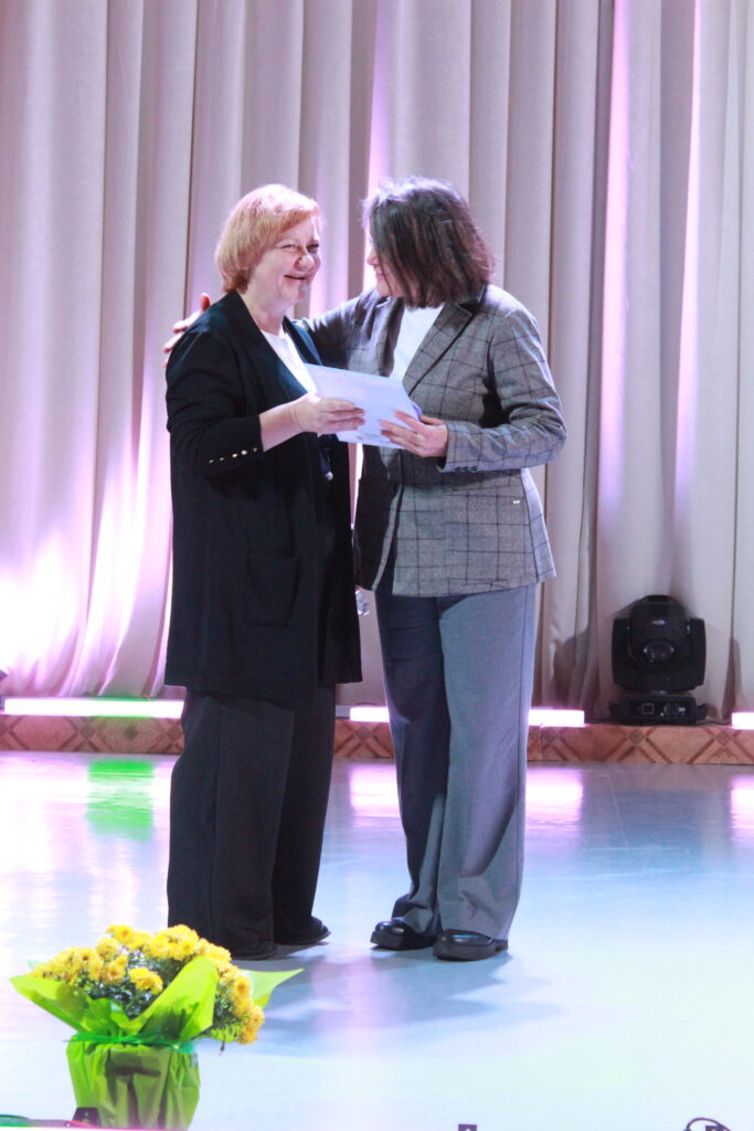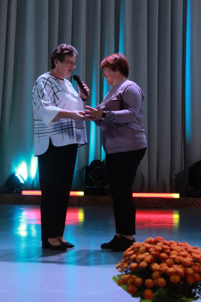 Долучилася до вітальний слів голова профспілки освітян Славутської громади Антоніна Степанюк, яка подякувала за працю, професіоналізм, відданість роботі та виховання дітей – патріотів своєї країни, а також побажала усіляких гараздів та скорішої Перемоги.
