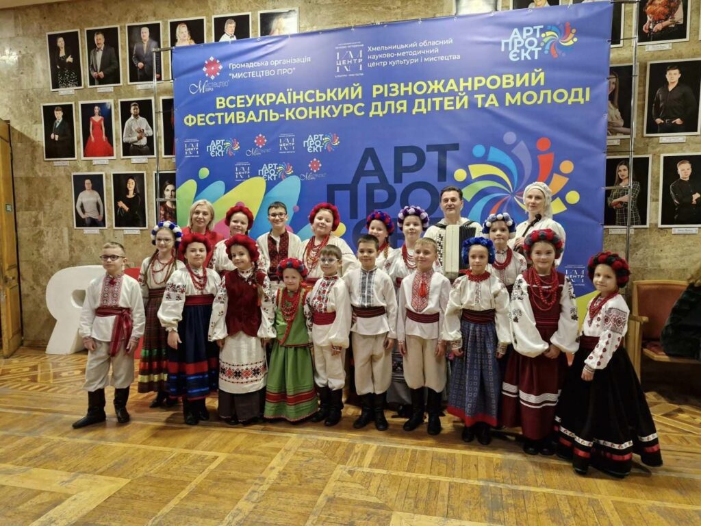 Володарі ГРАН-ПРІ Всеукраїнського різножанрового фестивалю – конкурсу «АртПроєкт» у Хмельницькому- молодший склад зразкового фольклорного гурту “Щедрик” (керівник Тетяна Маліновська)!