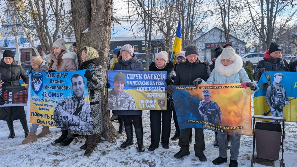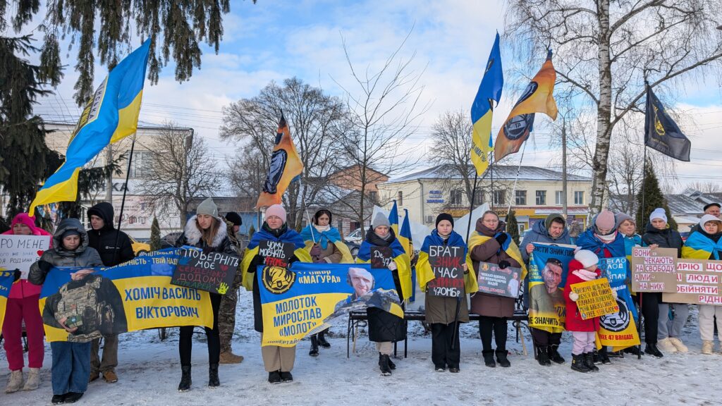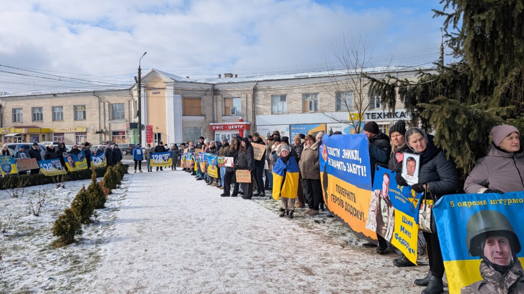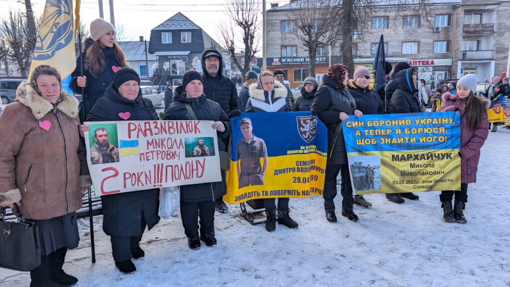 Родичі та друзі військових із їхніми фото, прапорами бригад й плакатами в руках прийшли, щоб вкотре нагадати про своїх близьких, які вчора боронили країну, а сьогодні стали бранцями російської неволі або про чию долю досі нічого невідомо.