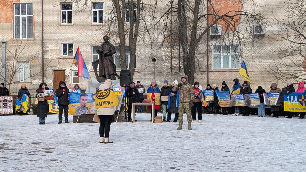 На площі ім.Т.Г. Шевченка сьогодні, 16 лютого, відбулась чергова мирна акція на підтримку зниклих безвісти та полонених захисників і захисниць України.