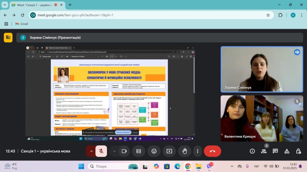 🔹Зоряна СІМІНЧУК, здобувачка освіти 9 класу Славутської гімназії «Успіх» Славутської міської ради, науковий керівник Наталія ПОЛІЩУК, учитель української мови (відділення: філології, секція: українська мова)