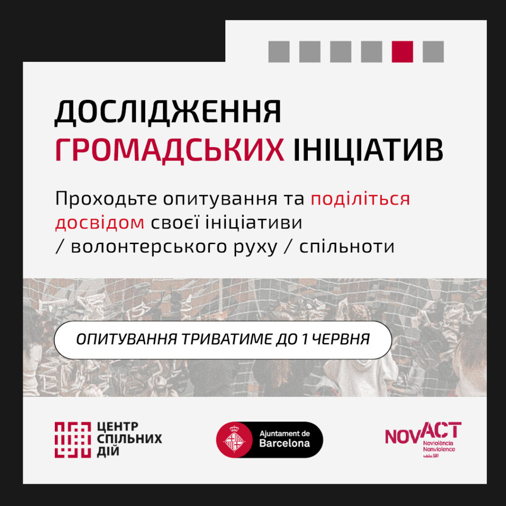 Центр спільних дій у співпраці з міжнародною організацією Novact (Іспанія) та за підтримки міста Барселони проводить загальноукраїнське дослідження громадських ініціатив.