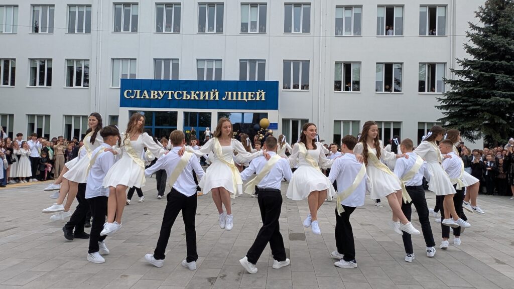 Традиційно під час свята останнього дзвоника юні славутські хлопці та дівчата закружляли у шкільному вальсі.