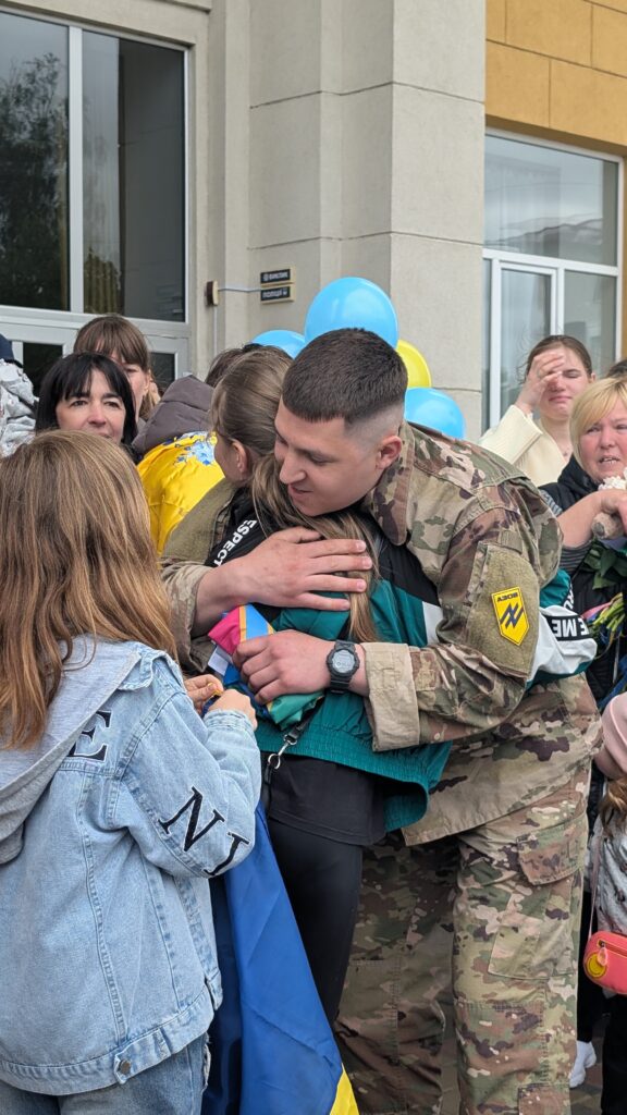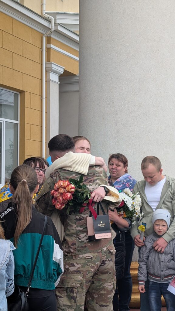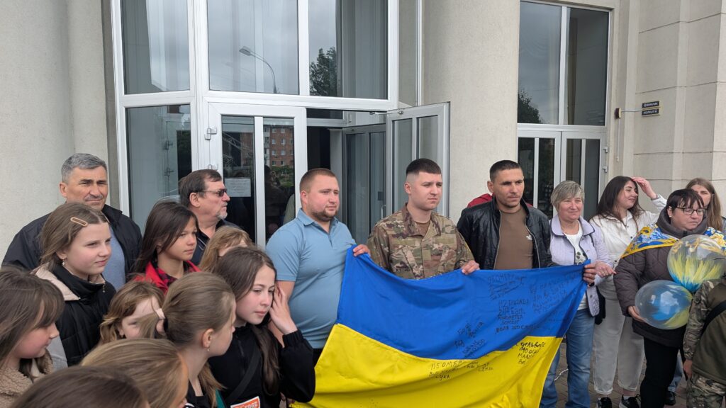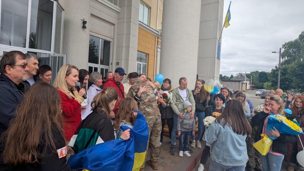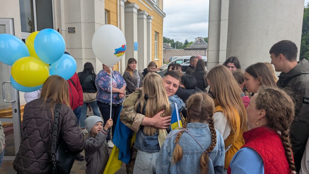 Зустрічали Сергія з короваєм, квітами, плакатами, подарунками, щирими обіймами та словами підтримки.