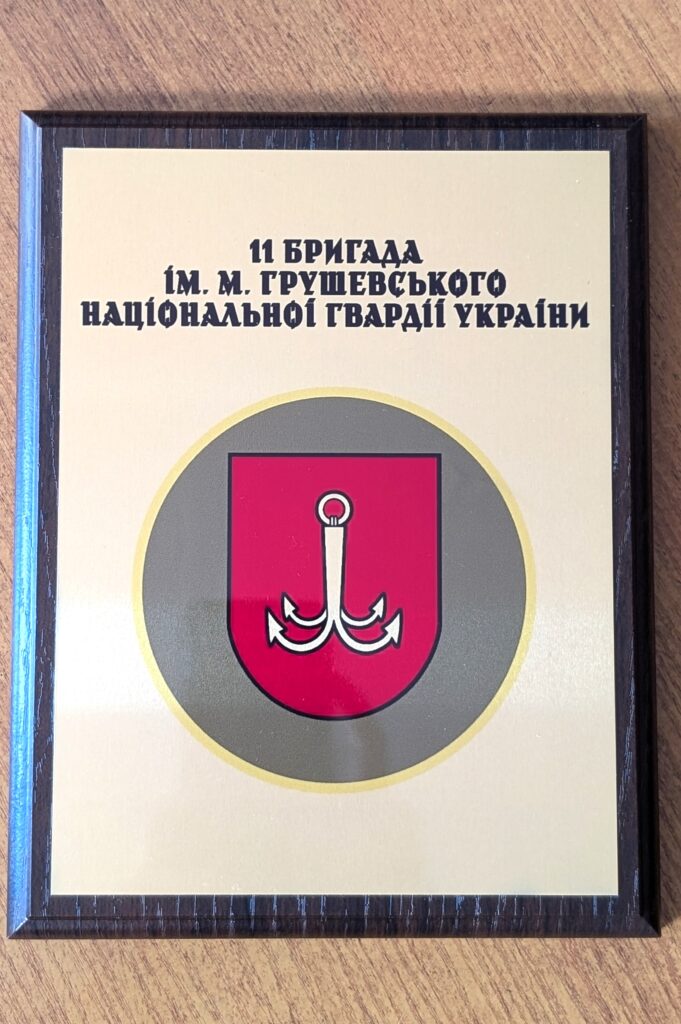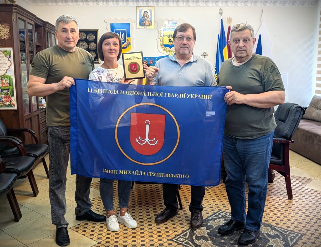 Один з військових підрозділів, а саме – 11-та бригада імені Михайла Грушевського Національної гвардії України (військова частина 3012) передала символічний подарунок та прапор міському голові Василю Сидору, тим самим висловлюючи свою вдячність за неодноразово надану допомогу колективу виконавчого комітету Славутської міської ради та усій Славутській громаді.