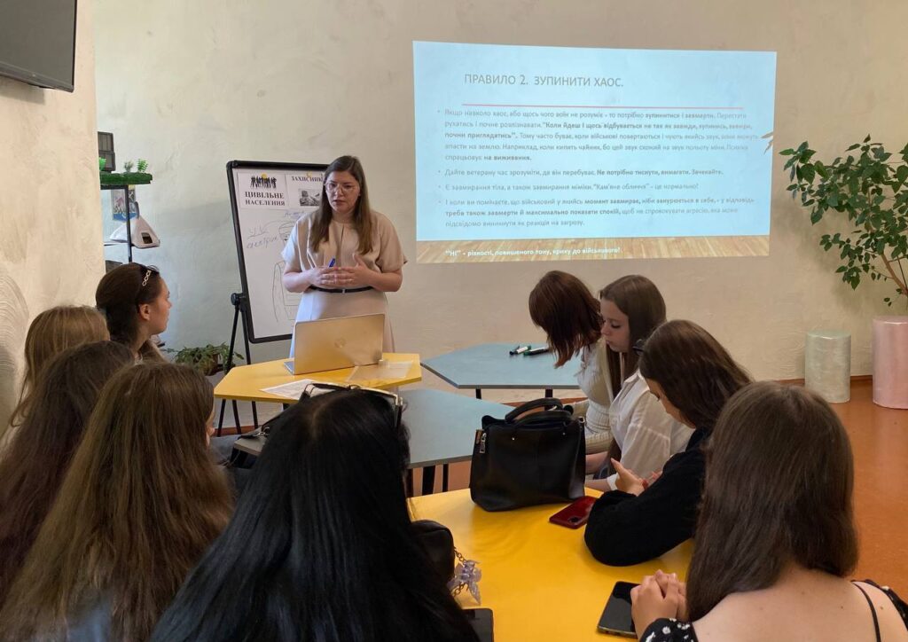 Тема — психологічна підтримка захисників та збереження власного ресурсу в умовах постійного хвилювання за близьких. Адже учасниці зустрічі є дружинами військовослужбовців і потребують як підтримки, так і інформації про те, як приймати та спілкуватися з своїм чоловіком-військовим.