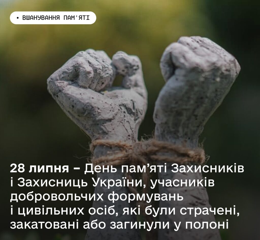 Сьогодні — особливий день скорботи та глибокої шани. Вперше ми відзначаємо 28 липня як День пам’яті Захисників і Захисниць України, учасників добровольчих формувань і цивільних осіб, які були страчені, закатовані або загинули у полоні. Цей день закарбувався у національній пам’яті через одну з найжахливіших трагедій сучасної війни — нічний теракт в Оленівці, коли 2022 року російські війська цинічно розстріляли колонію з нашими полоненими оборонцями “Азовсталі”.