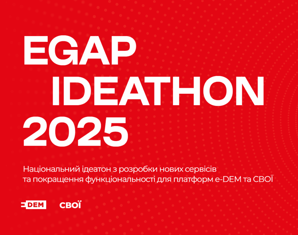 Міжнародна благодійна організація «Фонд Східна Європа» цієї осені у межах Програми EGAP проводить EGAP Ideathon 2025 — спеціальну подію, спрямовану на спільну розробку нових рішень у сфері CivicTech, е-демократії та локальних цифрових сервісів в межах розвитку функціоналу наших платформ e-DEM та СВОЇ.