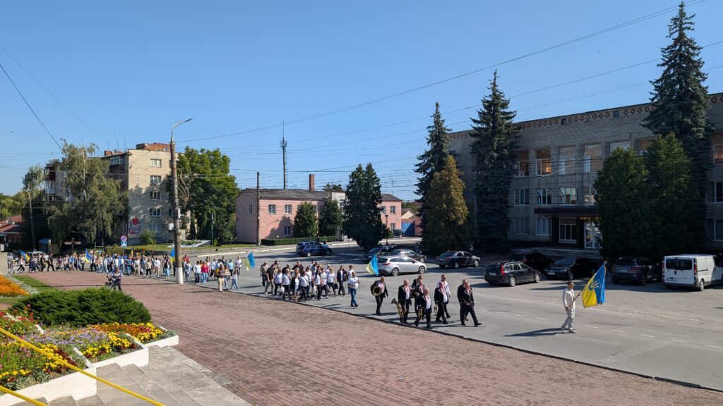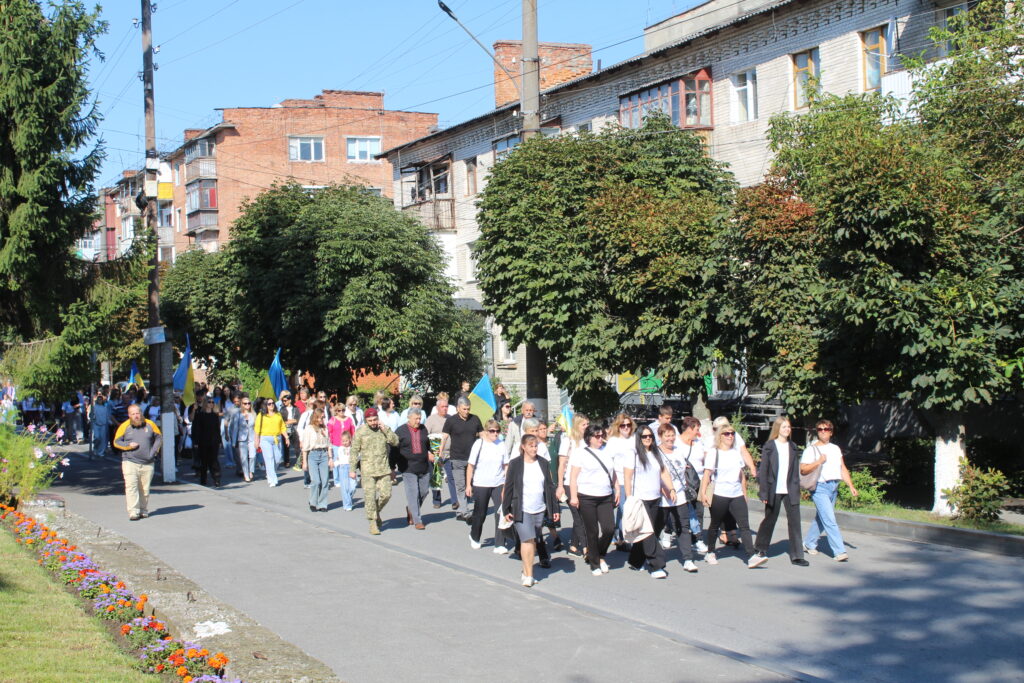 Опісля цього колона славутчан дружньою ходою рушила на центральну площу міста до Стели пам’яті Героїв російсько-української війни, де учасники заходу вшанували пам’ять полеглих земляків хвилиною мовчання та покладанням квітів.