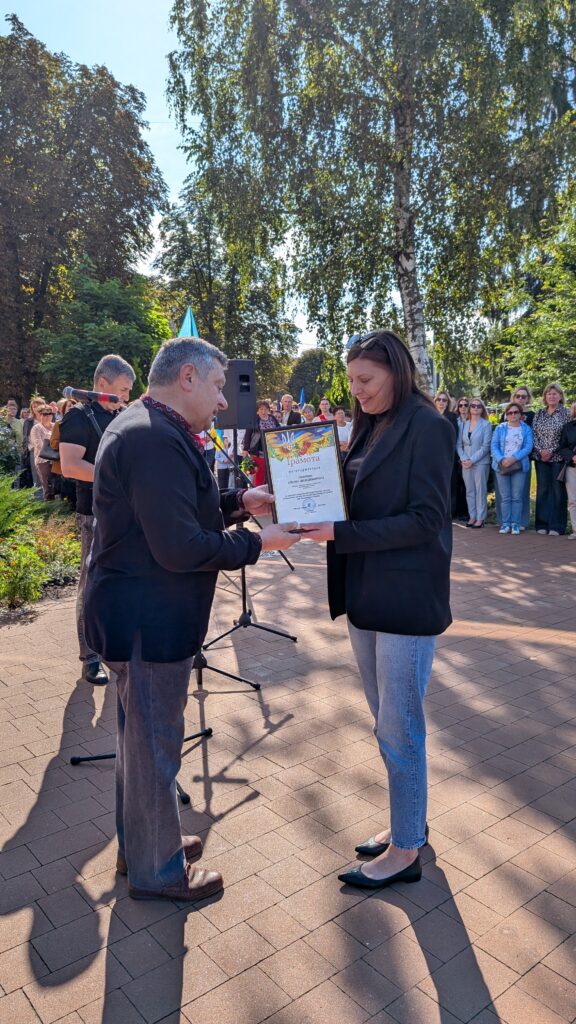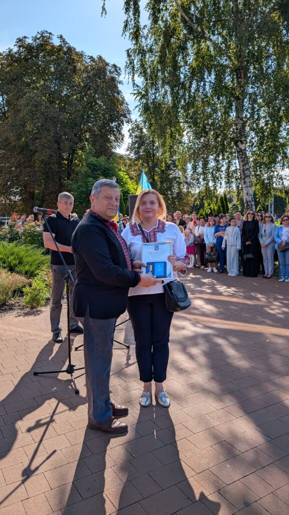 За самовіддане служіння українському народові, активну громадянську позицію, вагомий внесок у наближення перемоги, участь у національному відродженні України, утвердження її незалежності, патріотизм та з нагоди Дня Незалежності України грамоти Хмельницької обласної ради та нагрудні знаки «День незалежності України 2025», було вручено Інні Костирко – депутату міської ради VIII скликання та Оксані Галат – головному фахівцю з публічних закупівель КП «Славута-Сервіс».