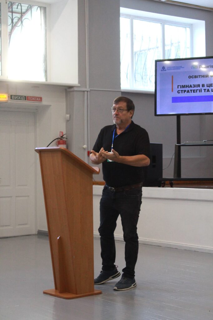«Усі, хто тут присутній – не спостерігачі, а активні учасники освітнього процесу, які дуже добре усвідомлюють значення освіти для кожної людини. Немає напрямку освіти як першочергової чи другорядної. Всі вони важливі. Сьогодні на плечі освітян випадають численні виклики, а такі заходи допомагають долати їх професійно. Наразі гімназії – це основа, а створення їх як потужних закладів – це можливість подальшого розвитку. Надіюсь на плідні спільні результати від цієї зустрічі».