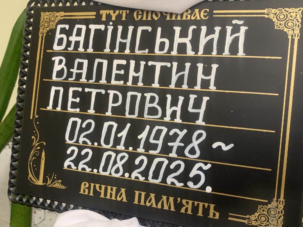 Солдат Валентин Багінський – наш земляк, захисник України – після виснажливої боротьби із хворобою помер у лікарні. Попри всі зусилля медиків, 22 серпня 2025 року його серце зупинилося… Серце воїна, що пройшов службу заради Батьківщини. Серце рідної людини, яке жило турботою за своїх близьких. Серце патріота, відданого своїй рідній землі.