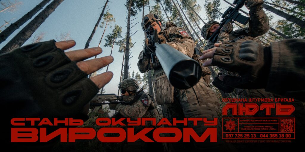 Приєднуйся до Об’єднаної штурмової бригади Нацполіції «Лють»! Стань тим, кого окупант побачить у житті останнім. Стань для нього вироком.