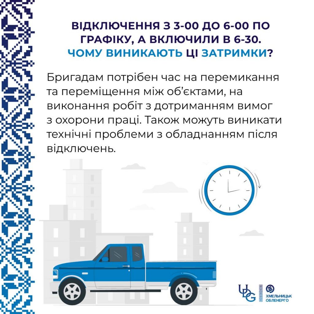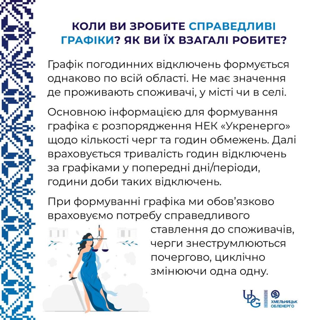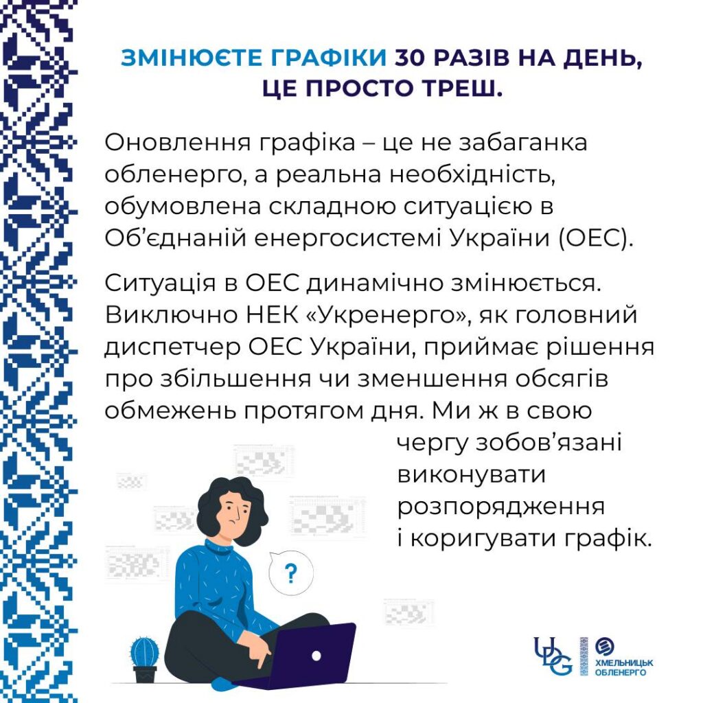 Водночас вкотре наголошуємо, що виконавчий комітет Славутської міської ради не впливає на відключення електроенергії у будинках славутчан. З питань електропостачання споживачам варто звертатися до надавача послуги — АТ “Хмельницькобленерго”.
