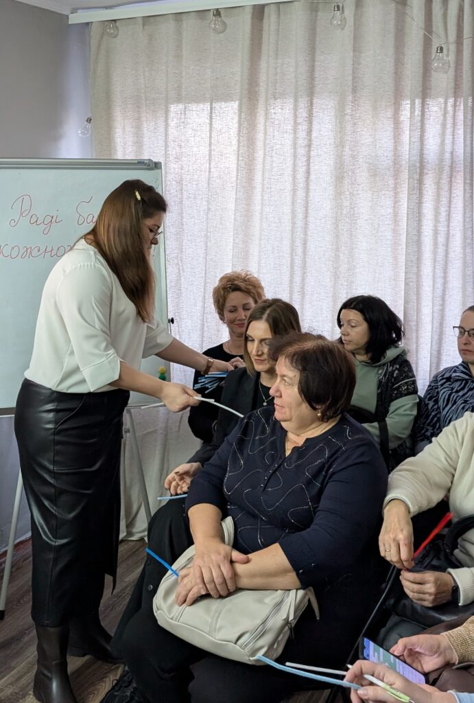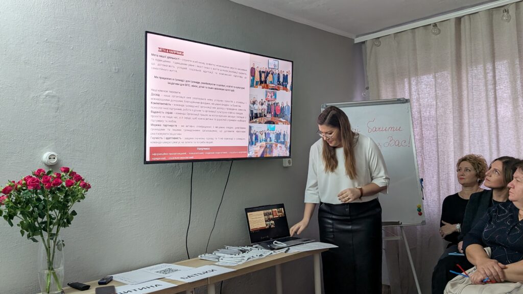 Після знайомства учасників Анна Пустовіт презентувала діяльність організації – команди волонтерів, яка четвертий рік працює з різними категоріями населення та реалізовує понад 15 напрямів психологічної, соціальної, освітньої та іншої підтримки.