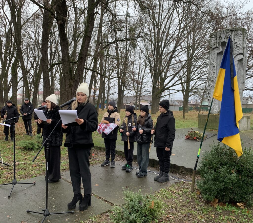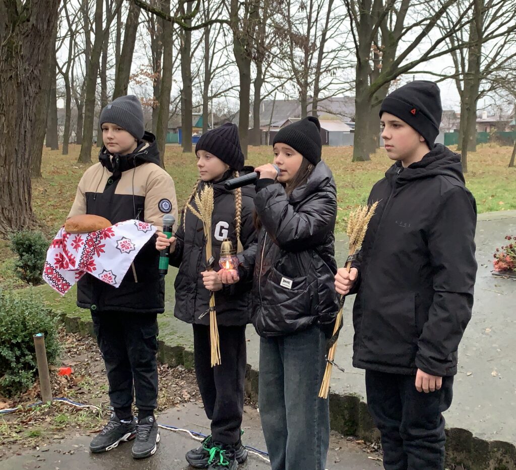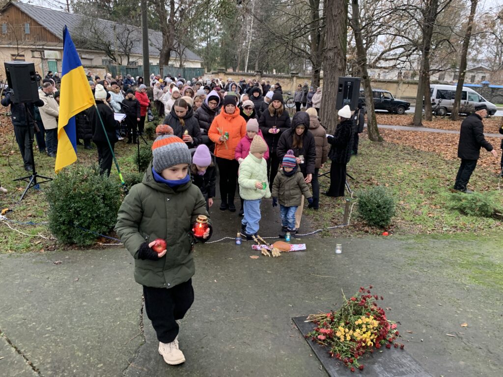 Працівники культури Оксана Турчак і Ольга Поліщук нагадали присутнім про події, які досі відлунюють болем у серцях українців. Вони коротко, але глибоко окреслили масштаби злочинів тоталітарного режиму, що свідомо намагався стерти наш народ з лиця землі. Особливо зворушливим став виступ наймолодших учасників заходу — вихованців міського Палацу культури. Їхні дитячі голоси, сповнені щирості, пролунали як щемливе нагадування про трагічні роки голодоморів.