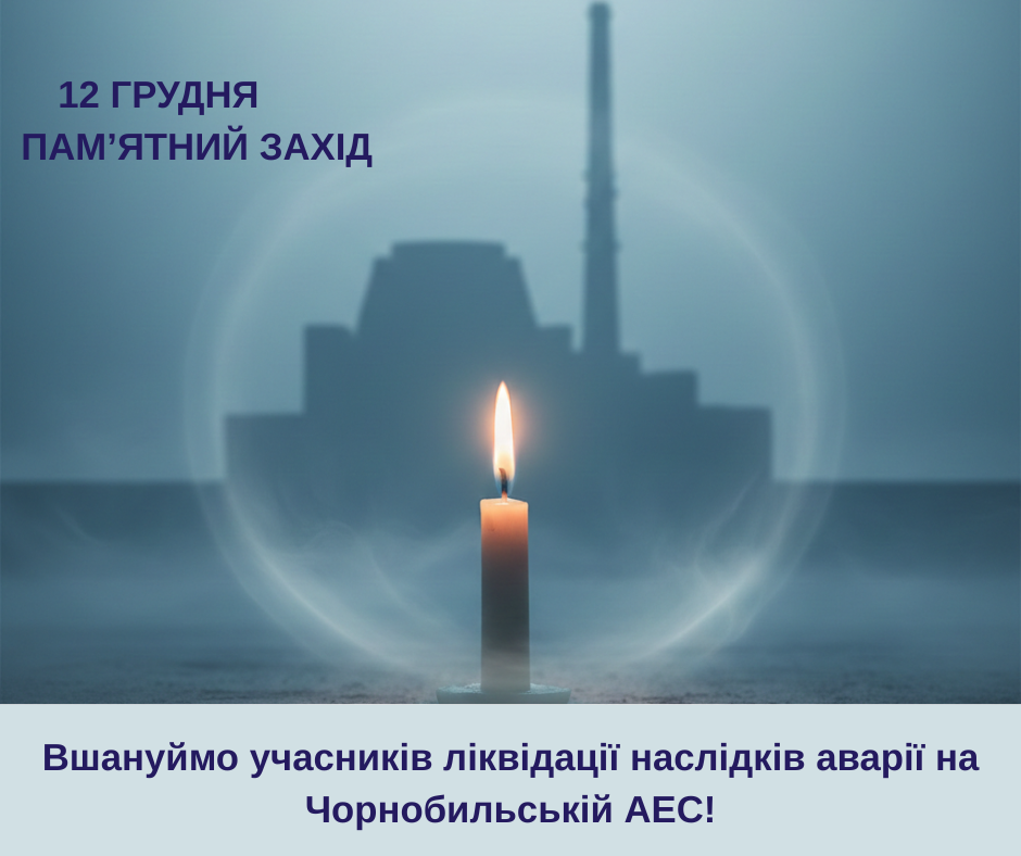 У п’ятницю, 12 грудня, напередодні Дня вшанування учасників ліквідації наслідків аварії на Чорнобильській АЕС відбудеться пам’ятний захід із покладанням квітів до пам’ятника ліквідаторам аварії (вул. Покровська).