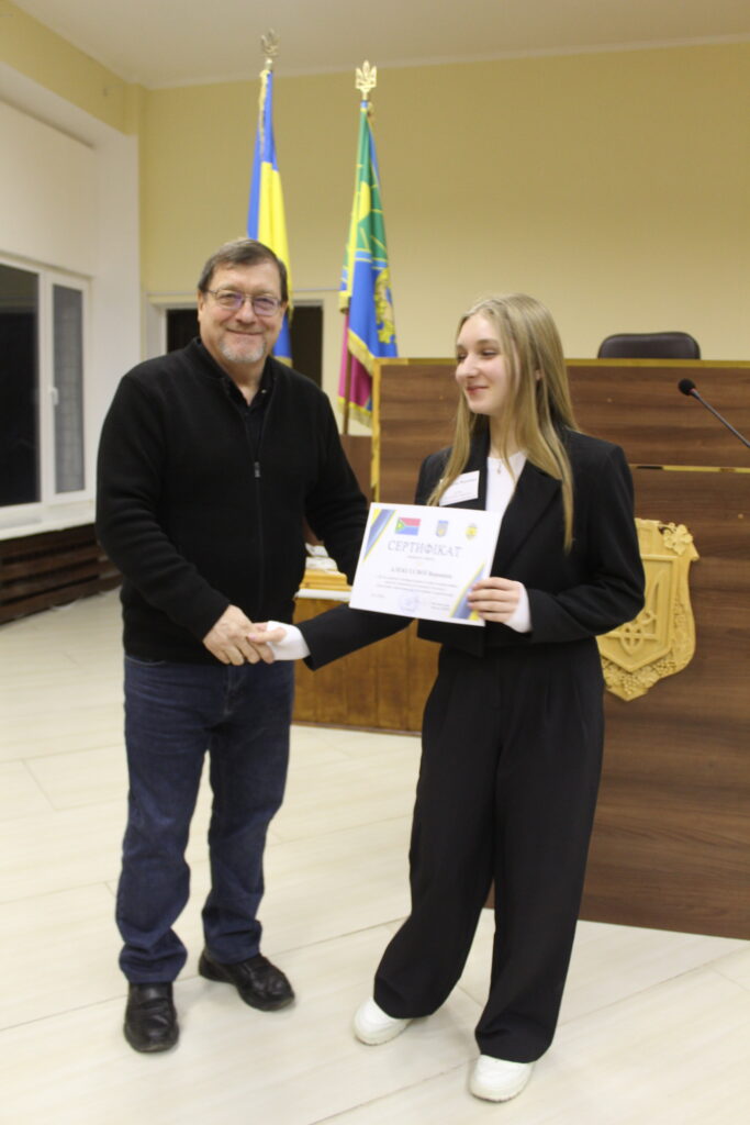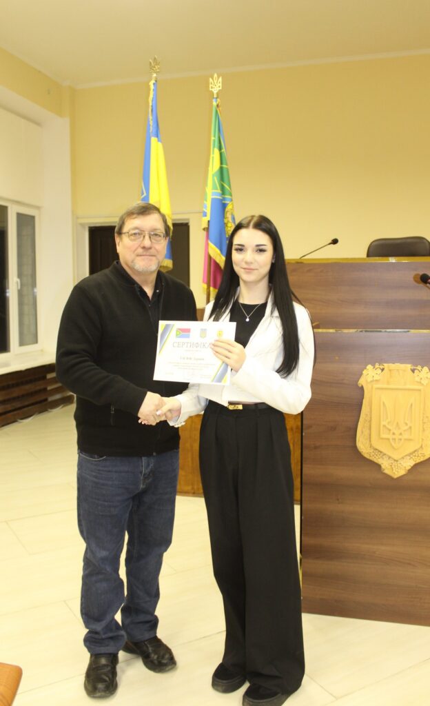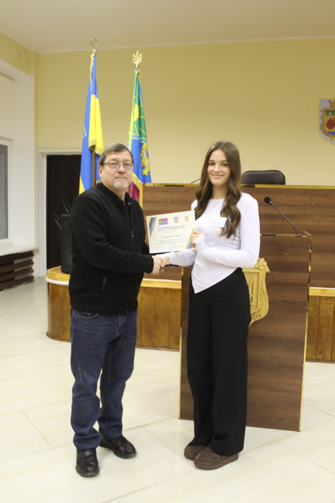 Завершальним етапом Дня молодіжного самоврядування стало урочисте вручення сертифікатів учасникам за професійно та відповідально відпрацьований день у виконавчому комітеті міської ради. На згадку про подію молодь зробила спільне фото та ще довго обмінювалася враженнями.