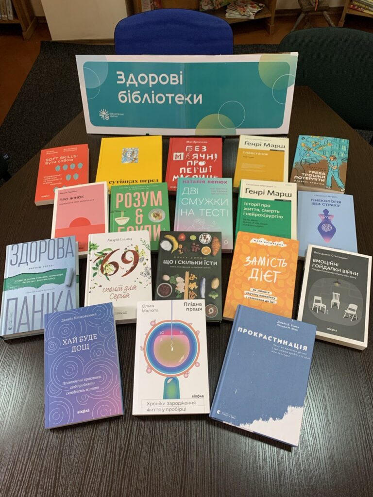 Крім того, у межах проєкту бібліотека отримала комплект літератури – 18 книг, присвячених темі збереженню здоров’я – здорового харчування, профілактиці неінфекційних захворювань, ментального благополуччя та емоційної стійкості і подолання наслідків стресу від війни. Саме такі теми є найактуальнішими і важливішими на сьогодні для нас українців.