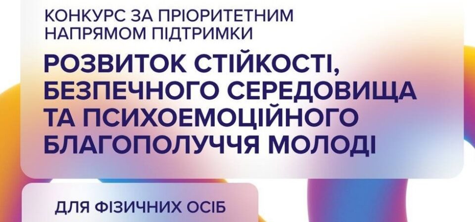 УМФ запускає грантовий конкурс для фізичних осіб у межах пріоритетного напряму «Розвиток стійкості, безпечного середовища та психоемоційного благополуччя молоді».
