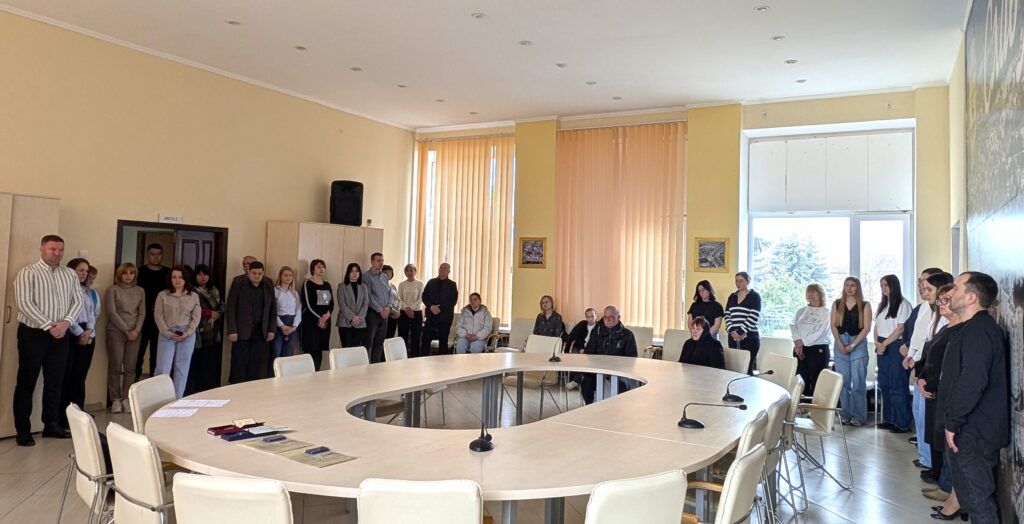 🕯️ Хвилиною мовчання присутні вшанували пам’ять усіх, хто віддав життя за Україну – за нашу державність, за право жити у вільній країні на своїй землі, за мирне майбутнє наших дітей.