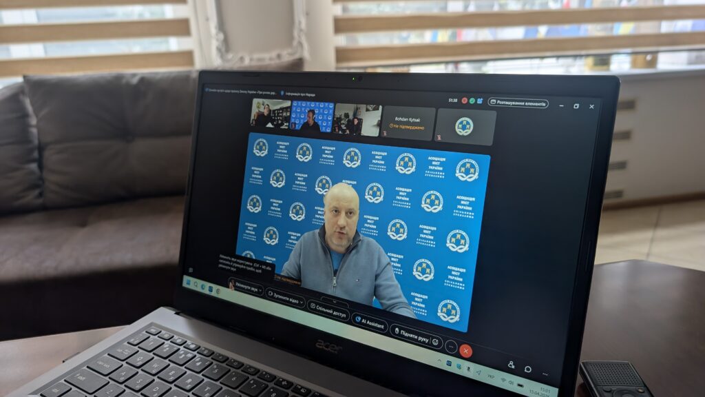 15 квітня відбулась онлайн зустріч за участю виконавчого директора Асоціації міст України Олександра Слобожана, народного депутата України, члена комітету ВР з питань економічного розвитку Богдана Кицака, міського голови Славути Василя Сидора та представників інших громад.