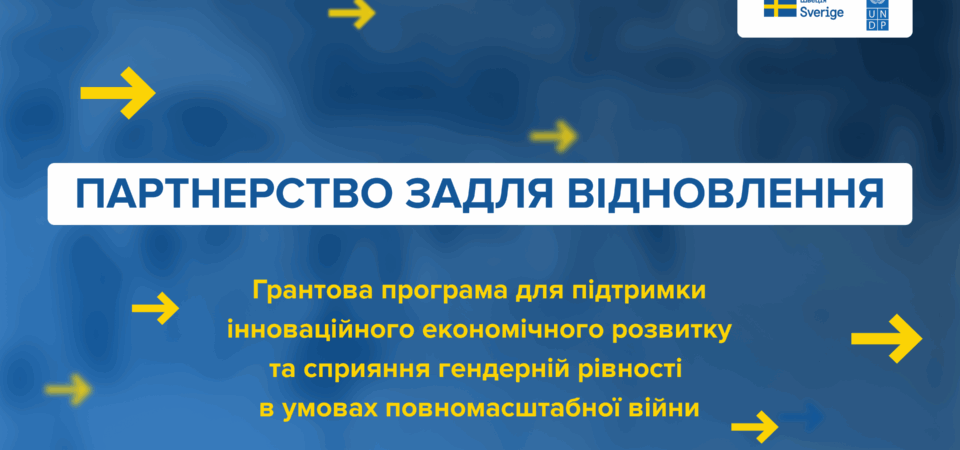 Програма розвитку ООН (ПРООН) в Україні оголошує грантову програму «Партнерство задля відновлення». Грантова програма впроваджується в межах проєкту «Посилене партнерство для сталого відновлення» (EPSR), який фінансується урядом Швеції через Шведську агенцію міжнародного розвитку (Sida).